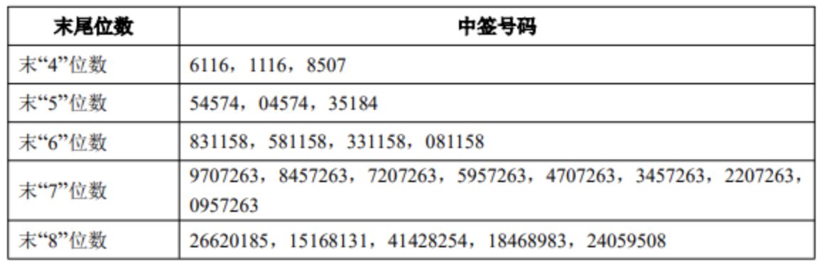 8日,沐曦股份公告稱,發(fā)行人和保薦人12月8日上午進行沐曦股份首次公開發(fā)行股票網(wǎng)上發(fā)行搖號抽簽儀式。凡參與網(wǎng)上發(fā)行申購沐曦股份A股股票的投資者持有的申購配號尾數(shù)與上述號碼相同的,則為中簽號碼。中簽號碼共有19331個,每個中簽號碼只能認購500股沐曦股份A股股票。中簽結(jié)果見配圖。