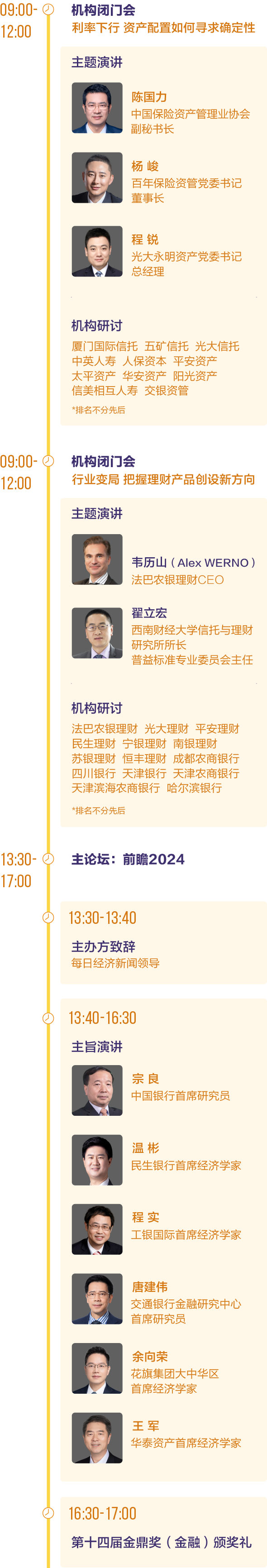 第十四屆中國金融發(fā)展論壇暨金鼎獎(金融)頒獎禮將于12月6日在北京隆重舉行。主論壇以“前瞻2024”為主題匯集頂級金融機(jī)構(gòu)的研究成果,就2024宏觀經(jīng)濟(jì)金融形勢進(jìn)行分享。分論壇聚焦金融機(jī)構(gòu)資產(chǎn)端和產(chǎn)品端兩大細(xì)分領(lǐng)域,邀請相關(guān)機(jī)構(gòu)業(yè)務(wù)負(fù)責(zé)人展開閉門研討。